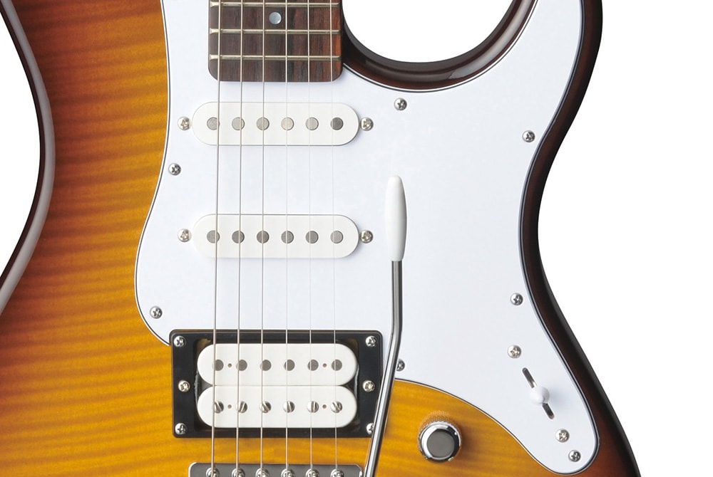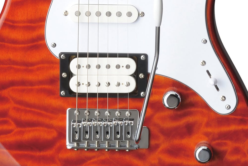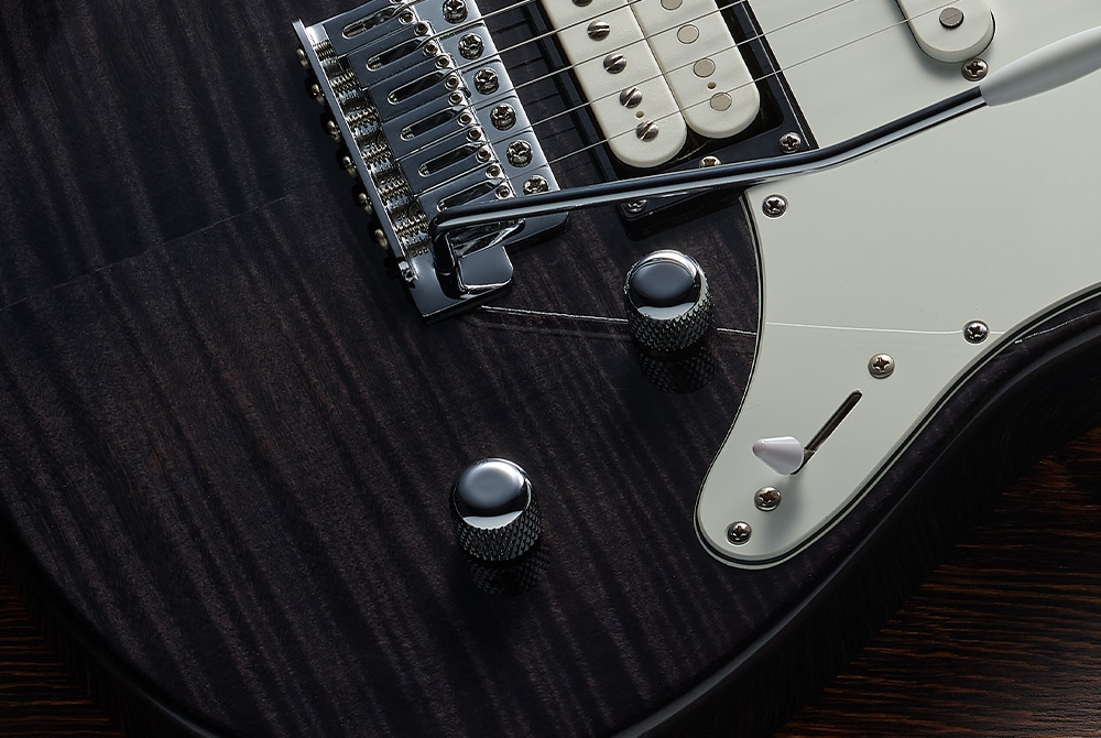 As tarraxas com trava Gotoh, combinadas com a ponte tremolo de 2 pivôs da Gotoh, proporcionam uma utilização suave e uma estabilidade de afinação excepcional.