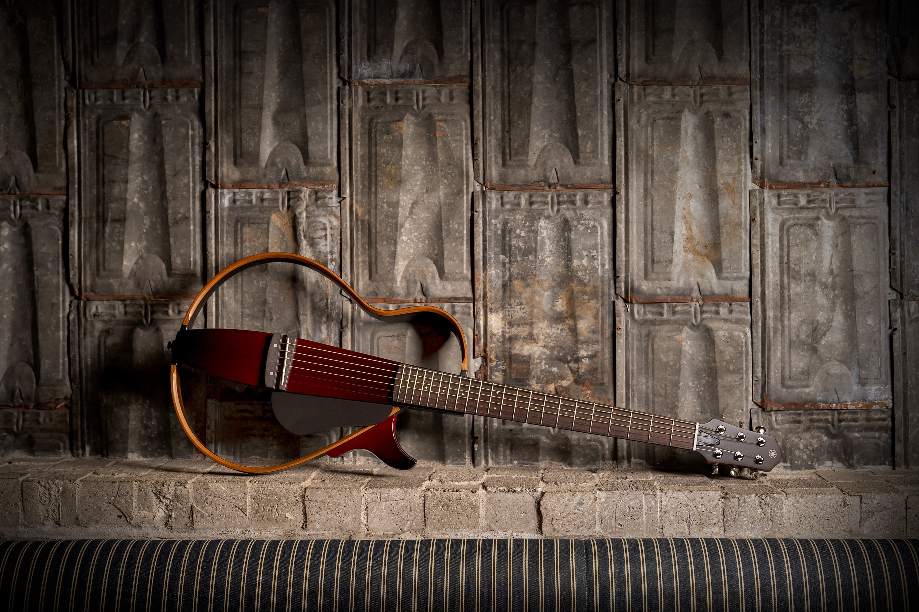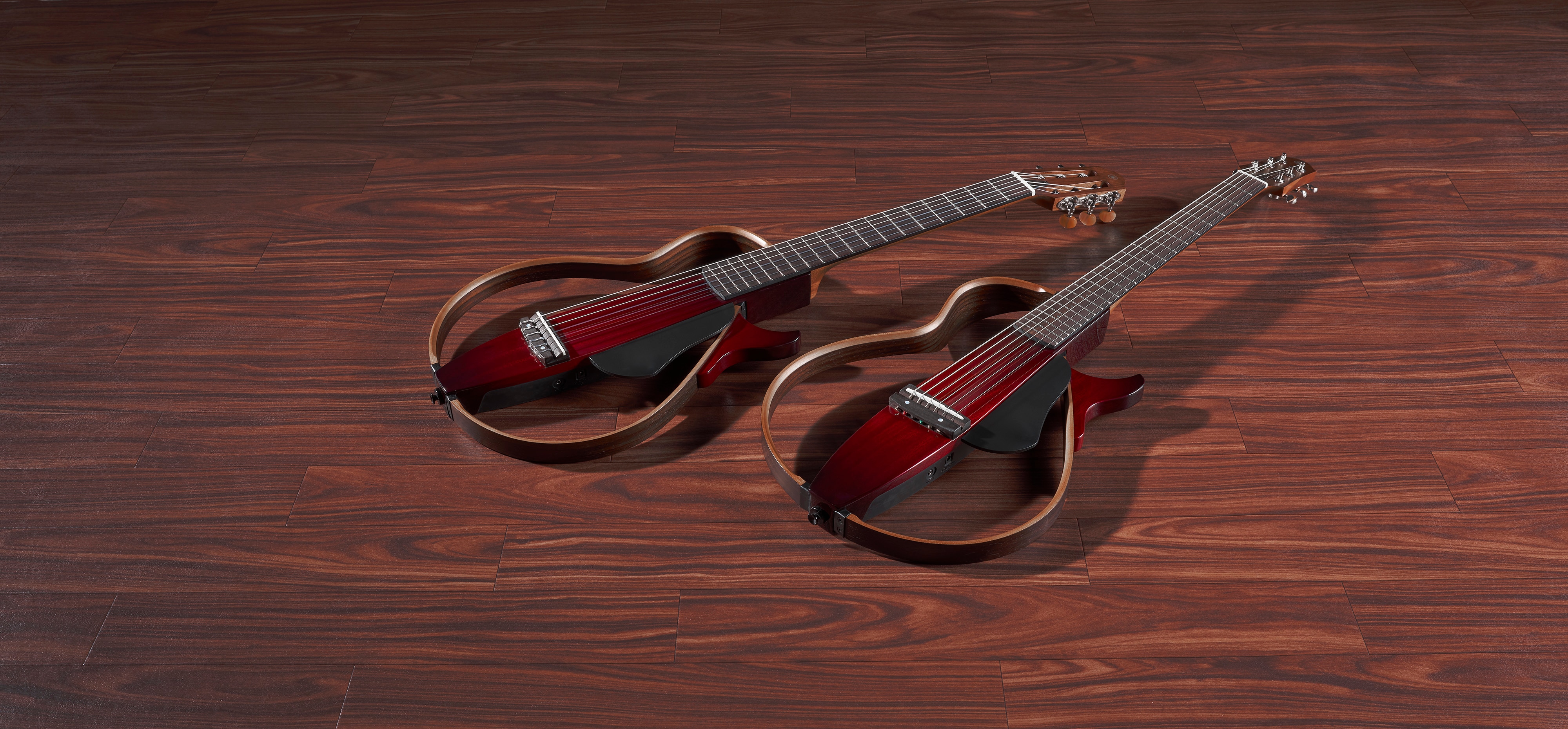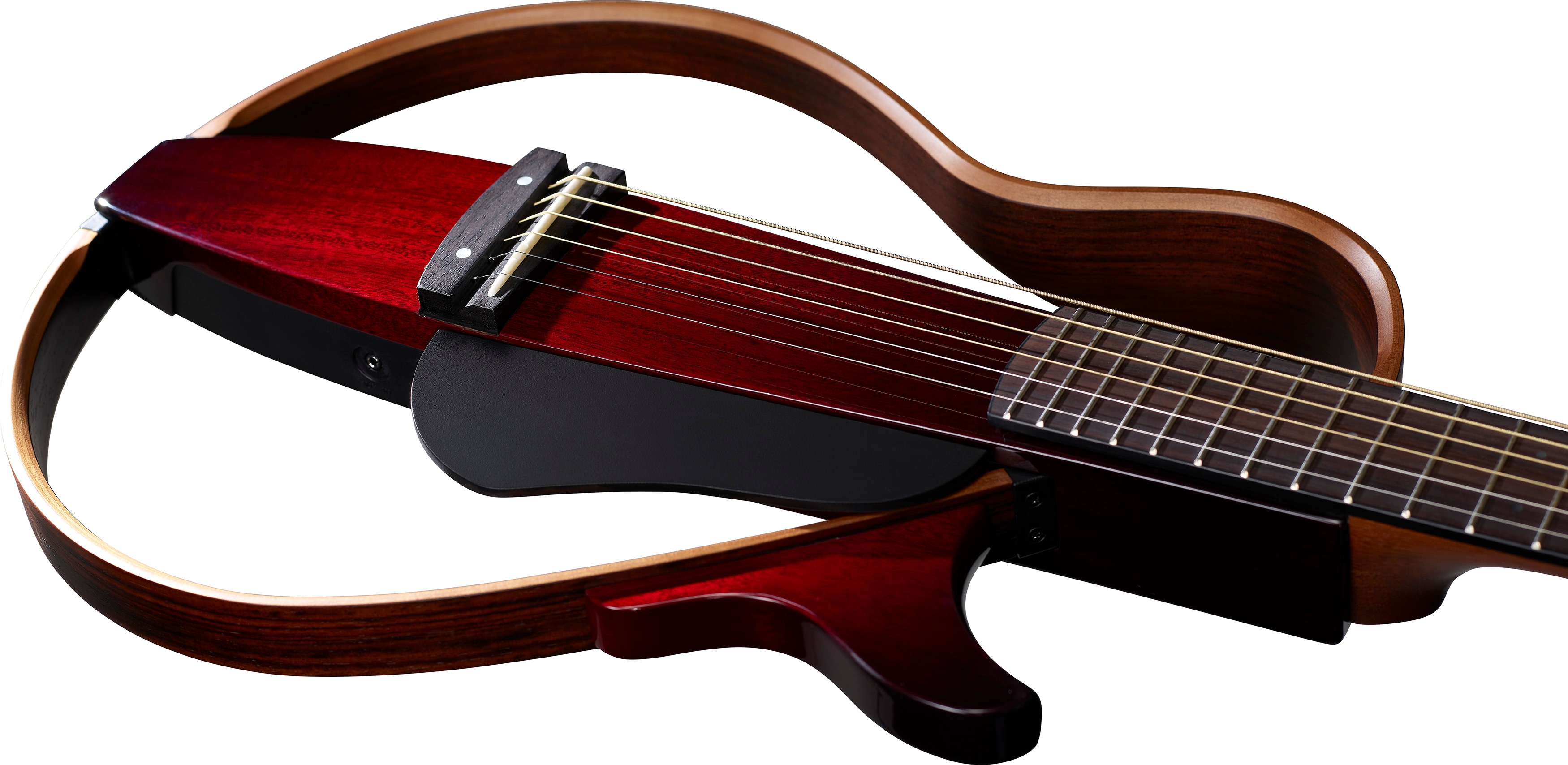 O violão SILENT SLG200S sempre foi o instrumento ideal para estudo, viagens e shows- seu design ousado e moderno ganha ainda mais destaque com o acabamento em Crimson Red Burst.