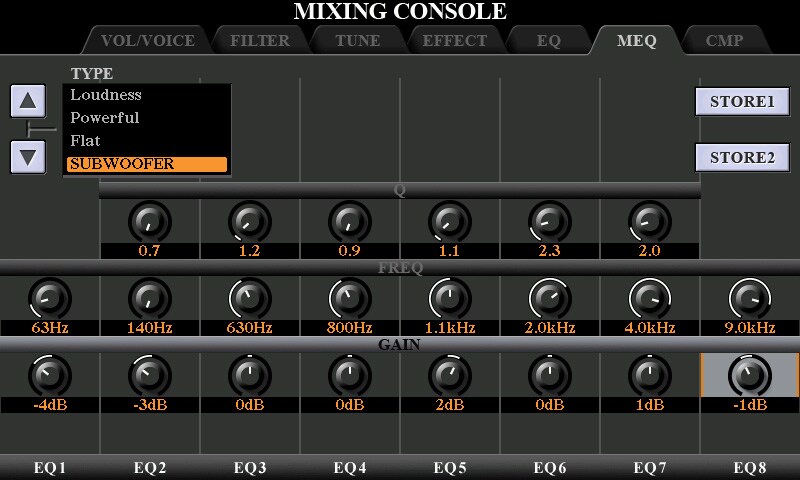 Para os modelos PSR-A5000/SX900/SX700/SX600/S975/775, selecione "With Subwoofer" (Com subwoofer) nas predefinições do EQ Master.