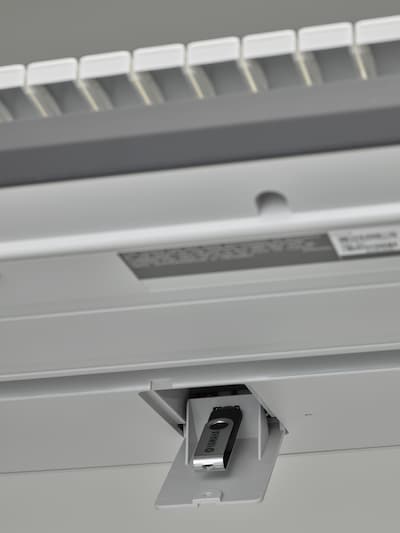 - Genos tem três portas USB TO DEVICE (Uma no painel, uma na parte de trás e uma embaixo do instrumento) para você manter os dados.