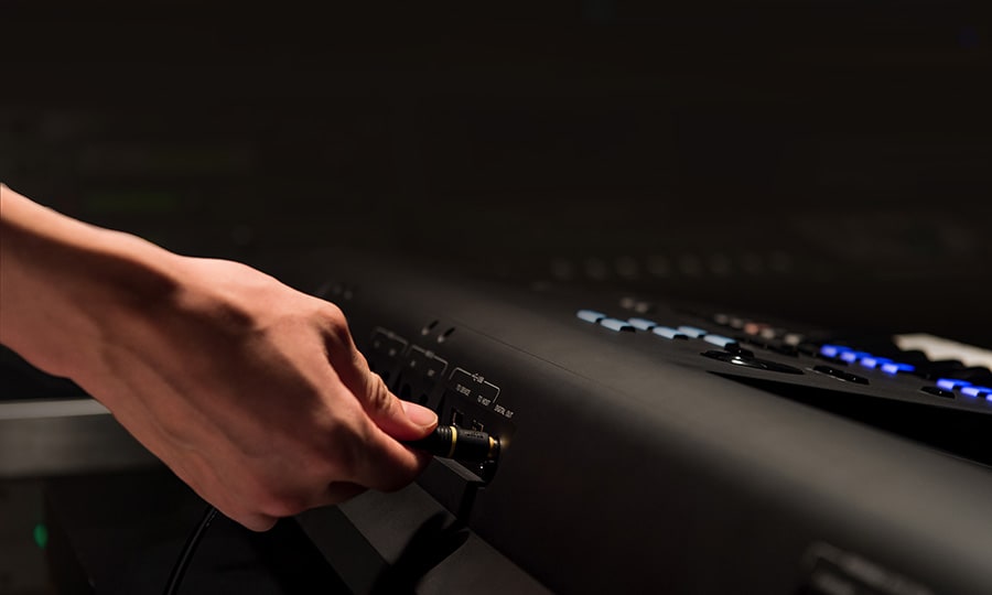 A saída S/PDIF Digital pode ser ligada a equipamentos de estúdio ou a sistemas home theater para reproduzir o áudio do Genos sem qualquer perda de sinal e qualidade.