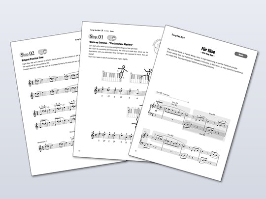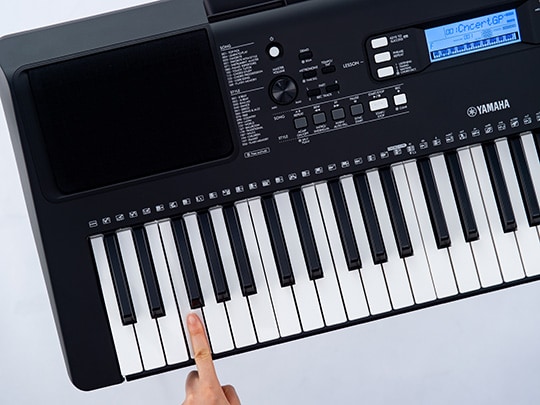 "Keys to Success" se baseia nas técnicas de ensino pesquisadas pela Yamaha ao longo de muitos anos. Você pode selecionar apenas as frases principais da música - aquelas que você mais curte ou as que precisa treinar - e praticar uma a uma. Essa lição é ideal para iniciantes.