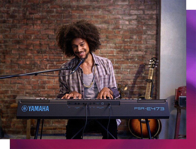 O teclado sensível ao toque e poderoso motor de som do PSR-E473 trazem um excelente som e a ótima sensação em um instrumento totalmente novo.
