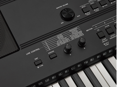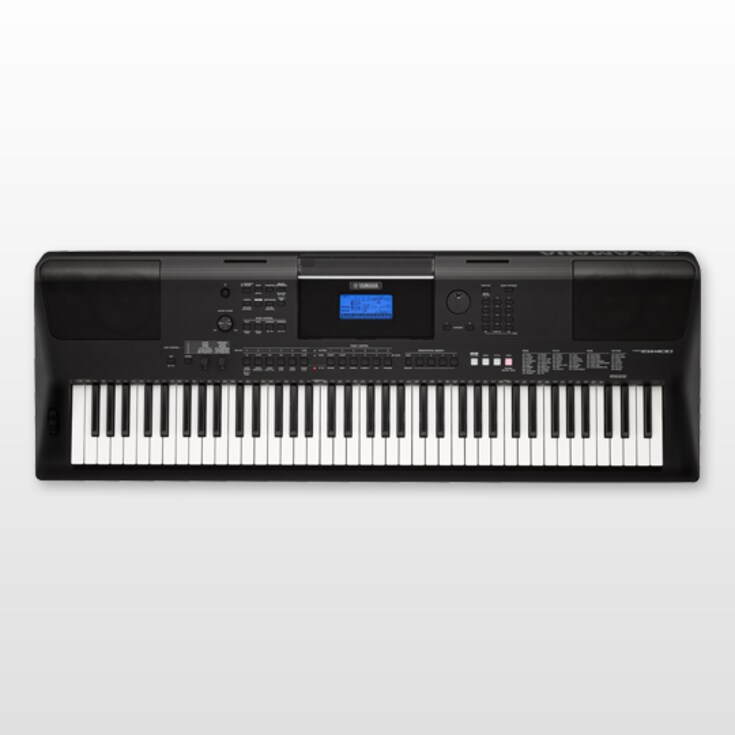 O modelo de proa na gama PSR-E está construído para tocar ao vivo. Características profissionais fáceis de usar, teclado com 76-teclas sensíveis à intensidade de toque, a nova Live! Grand Piano Voice, conexão a computador ou armazenamento externo e saídas L/R para ligar a um sistema PA.