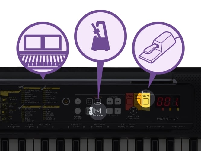 O PSR-F52 é o teclado perfeito para quem quer começar aprender a tocar. Tem todas as funcionalidades necessárias para a primeira fase da experiência de tocar um instrumento. Que melhor maneira de experimentar uma aventura na música do que em um teclado fabricado pela Yamaha, a fabricante de instrumentos reconhecida mundialmente? O PSR-F52 oferece uma base bastante sólida para quem quiser começar a tocar teclado.