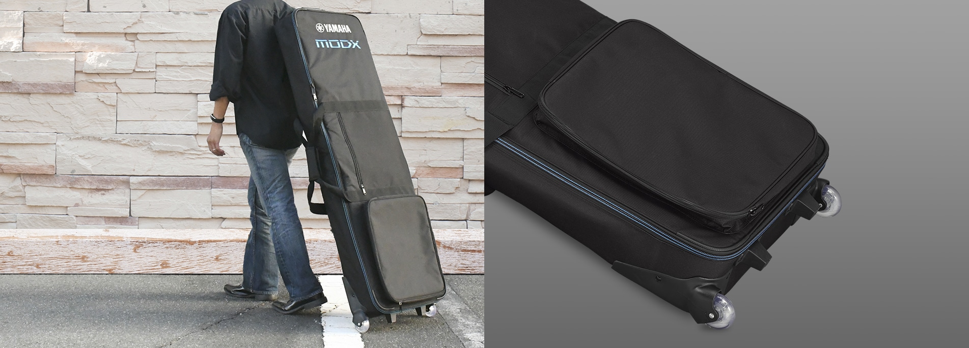 Leve e elegante, a capa premium do MODX protege seu instrumento. A capa do MODX é fabricada com nylon de alta qualidade e zíper de alta qualidade. Vem com bolsos para pedais e cabos e um interior lindo para proteger seu MODX por muitos anos. leve e elegante, a capa do MODX protege seu instrumento.