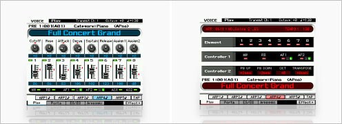 A nova Interface de Usuário do MOTIF XF oferece vários tipos de design de Display LDC para cada modo. Assim, você pode selecionar o “layout” desejado de acordo com o cenário incluindo criação musical ou performance ao vivo.