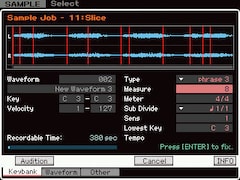 Pode conectar um microfone a um input A/D e também samples de voz, se seleccionar a função "slice" durante o processo de sampling, mesmo que mude o tempo das canções e padrões, o áudio gravado vai seguir a batida com sincronização perfeita. Pode processar os seus samples gravados pormenorizadamente para produzir o som certo usando o editor de sample UI.
