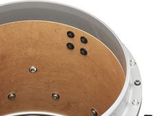 Um anel de alumínio na superfície interna do casco suporta a afinação em alta tensão da pele da caixa