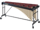 Marimba de 4 oitavas em jacarandá, com extensão de Dó28–Dó76, ranhuras de ressonadores em três posições, estrutura com ajuste de altura, suportes duplos angulados e suportes horizontais para as pernas.