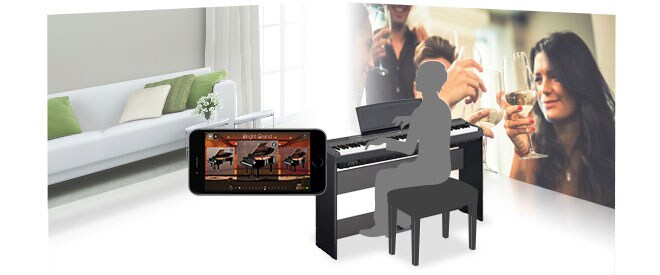 O "Controlador de Piano Digital" permite-lhe controlar as muitas funções incluídas num piano digital, com o seu iPhone ou iPad, para ter assim uma utilização ainda mais simples.