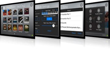 Toque no ecrã para activar o modo “Dual” (juntar dois Sons diferentes) ou o modo “Split” (dividindo o teclado em lados esquerdo e direito e designar Sons diferentes para cada um) de forma simples e intuitiva. As escolhas podem ser feitas subtilmente ao verificar o “song name” no ecrã da canção e o “type name” no ecrã de definição de reverb e efeitos.