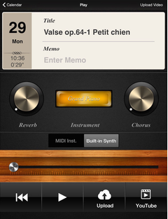 Agora, você não precisa levar o instrumento com você. Desconecte o cabo Yamaha i-MX1 e você pode ouvir o que tocou no iPhone/iPad usando o aplicativo de sintetizador do Piano Diary. Desfrute as músicas que você tocou onde e quando quiser - usando o iPhone/iPad ou na Internet com os filmes que você compartilhar no YouTube.