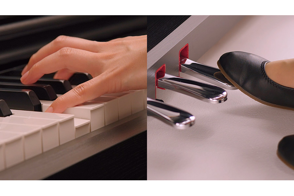 Com a ação de um piano de 88 teclas, o GHS (Graded Hammer Standard) reproduz o toque do piano acústico, desde a sensação naturalmente pesada das teclas graves até o toque mais leve nas oitavas superiores. As teclas GHS oferecem uma resposta e sensação no estilo do piano de cauda, permitindo a repetição rápida das notas e um autêntico controle expressivo. Além disso, o recurso de meio-pedal replica autenticamente a ação do pedal de sustentação do piano de cauda, proporcionando uma rica variação expressiva.