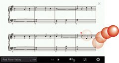 Acompanhe a canção com a bolinha saltitante mostrada na partitura conforme você toca para ter certeza de que nunca irá se perder. A página vira automaticamente ou você pode passar páginas com deslizamento horizontal na tela. Se a leitura musical não é o seu forte, você pode seguir as luzes-guia acima do teclado que irão mostrar as teclas corretas. Com o guia ativado, o CVP irá aguardar até que você toque a nota correta, assim você pode praticar no seu próprio ritmo.