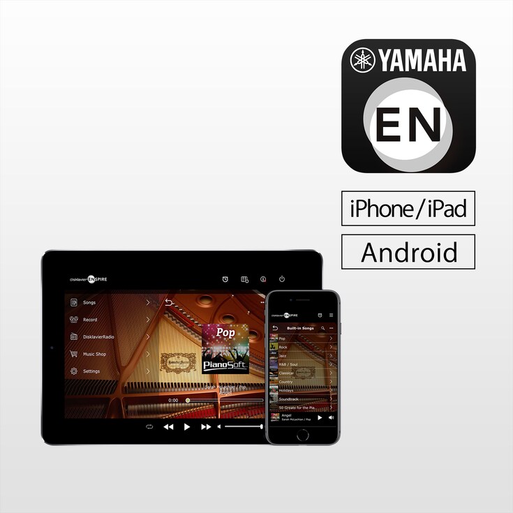 O Disklavier ENSPIRE permite que você se divirta com qualquer música que se adapte ao seu humor ou ocasião, do piano de solo clássico ou opções de concerto para as suas canções favoritas de jazz ou pop em piano, acompanhado por áudio e vocais. Um desenho de IU de fácil utilização e intuitiva possibilita acesso direto às 500 canções integradas* e milhares de performances que podem ser baixadas diretamente no instrumento a partir da loja online MusicSoft da Yamaha.