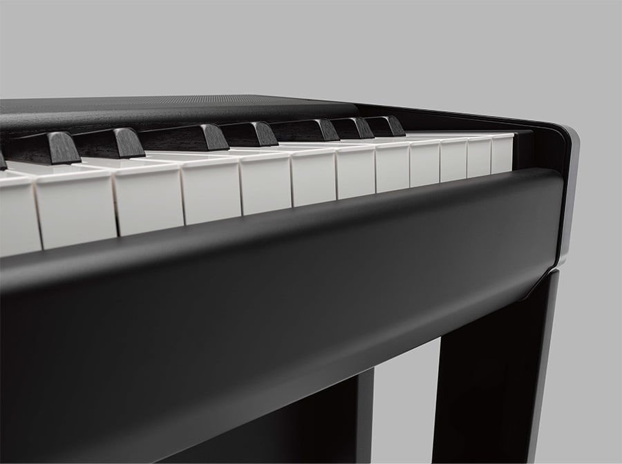 O material NWX das teclas brancas do P-515 é de madeira da melhor qualidade e coberto com marfim sintético. As teclas pretas têm acabamento em ébano sintético texturizado. Além disso, as teclas dão a mesma sensação do escape dos pianos de cauda - os martelos se afastam das cordas assim que as batem para evitar qualquer interferência na vibração.
