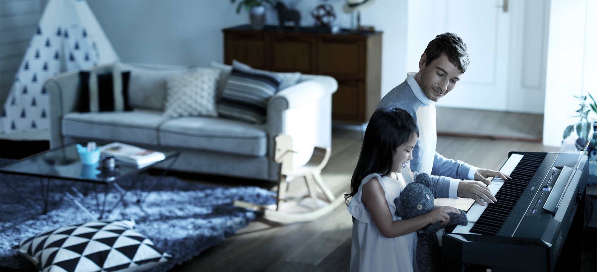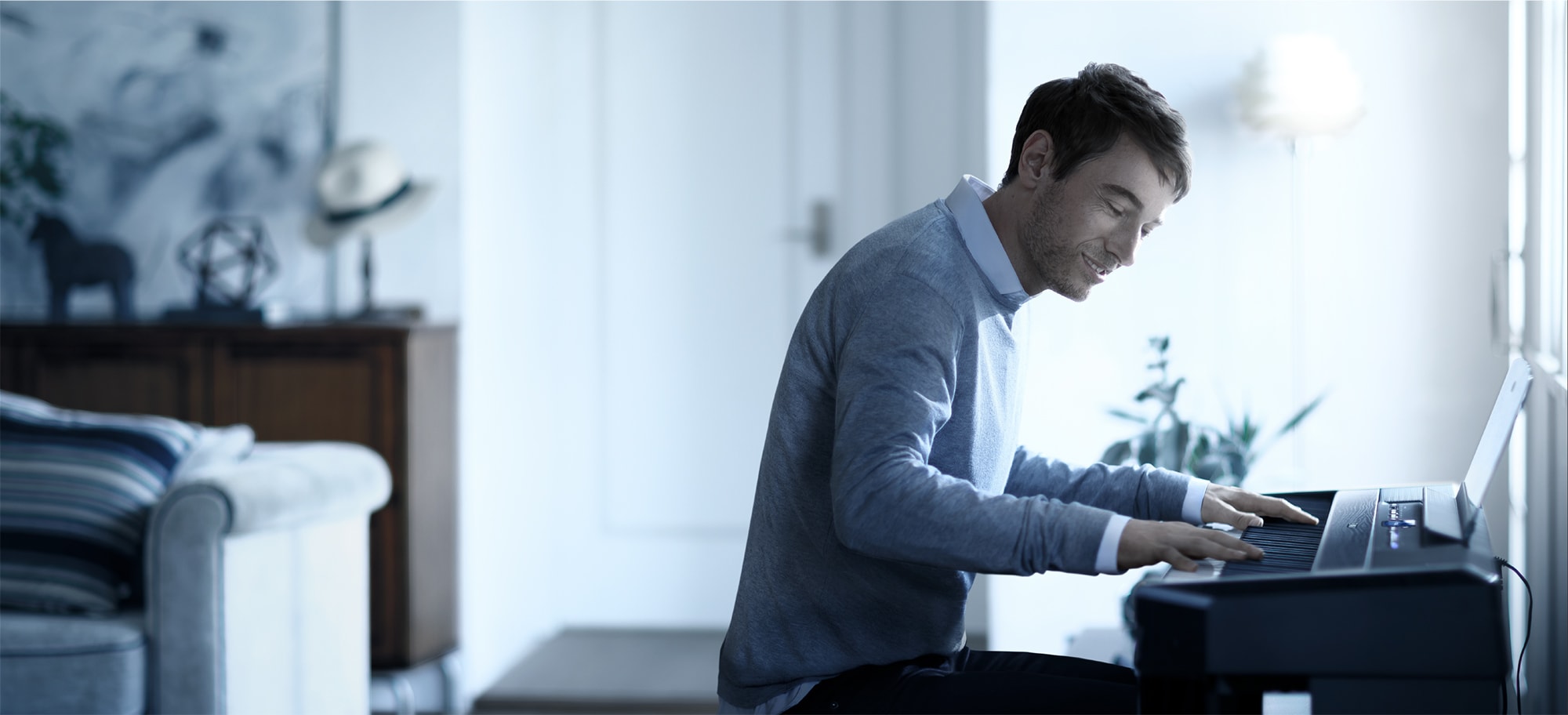 A função Sala de Piano é para quem quer tocar o instrumento como um piano, mas de forma simples e conveniente. Seja qual for a configuração da voz e de outras coisas, é possível deixar as configurações ideais para piano pressionando apenas um botão. Crie um som personalizado ajustando os vários parâmetros, como posição da tampa, ressonância da corda e dos abafadores, resposta ao toque e assim por diante.
