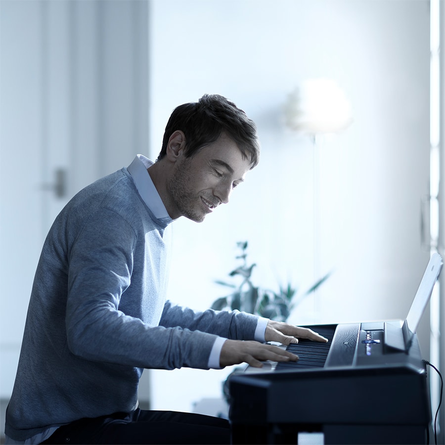 O P-515 vem com o recurso Sala de Piano - você escolhe o tipo de piano e de ambiente, além de ajustar várias configurações para dar forma ao seu som.