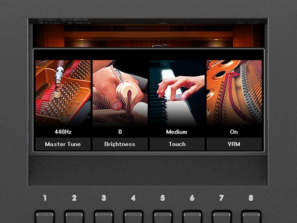 Desfrute da sensação acústica de um estúdio de ensaio, do palco, de uma catedral e em outros locais; e abra a tampa do piano de cauda gradativamente para sentir as nuances no som.