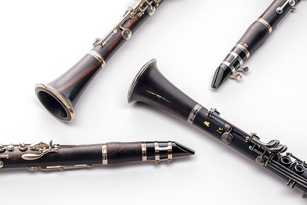 Esses exclusivos clarinetes foram produzidos aproveitando a diversidade natural da madeira, inclusive as rachaduras, lascas e buracos que surgem durante o processo de crescimento da madeira.