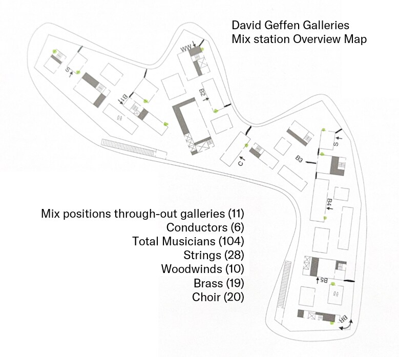 Mapa geral das estações de mixagem nas Galerias David Geffen