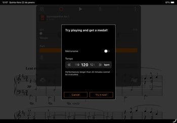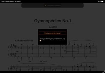 Você pode adicionar partituras em PDF disponíveis comercialmente e visualizá-las na tela enquanto toca.