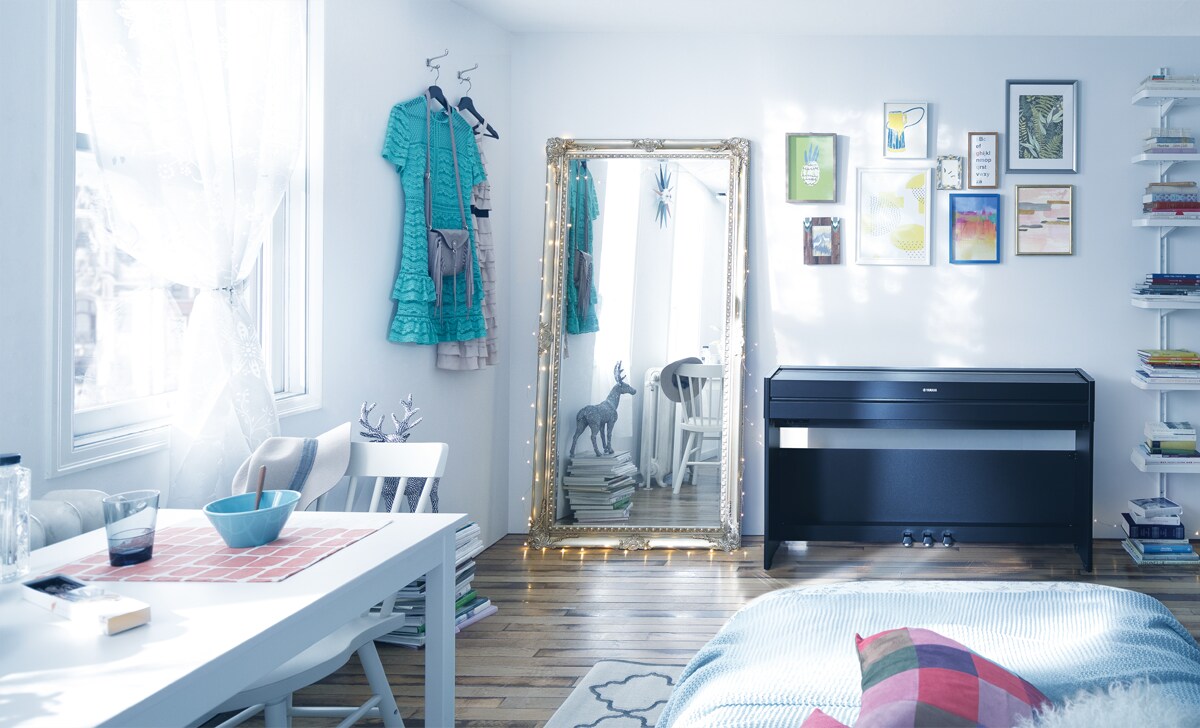 O YDP-S54 oferece uma grande experiência de piano, com o grande som do Piano de concerto do Yamaha CFX e o expressivo teclado Graded Hammer 3 (GH3).